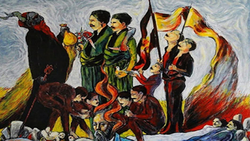 پیرەمۆتەیەکی گۆج، ڕدێن شۆڕەوەبوو، دەست و قول بەڵەک، هاسکە هاسک، توورەکەیەک بە شانەوە، بە شەلەشەل بەڕێی حەشارگەکەیەوە بوو. گەییەوە. چووەوە ژوورێ. توورەکەی لە شانەوە کرد. مەندیلە ڕەشەکەی کە سەروچاوی پێ هەڵبەستبوو کردەوە و قیت لەسەر بەستییەوە. چووە سەر شێرەکە و دەست و پەلی توند ڕێخست، تاوەکوو خوێنەکەی لێبێتەوە. شوشتی و پاشان بە عەباکەی ویشکەوە کرد. کەوڵ ڕاخرابوو؛ ڕازابووەوە و بۆنی سەر و پێ وڵاتی داگرتبوو. مۆتەی ژنیشی دەست لەژێر چەنە، چاوەڕێی، بەدیار خوانەوە دانیشتبوو. دانەنیشت. دەستبەجێ توورەکە ڕزقەکەی دەست دایە و چووە ژێرخانەوە. کلیلە ژەنگاوییەکەی دەرێنا و لە دەرگاکەی نا و کردییەوە. چراکانی هەڵکرد. توورەکەکەی بە کۆگاکەدا هەڵپەسارد. داهاتەوە؛ لاقێکی لێ ڕاکێشا و بەدیارییەوە دانیشت: