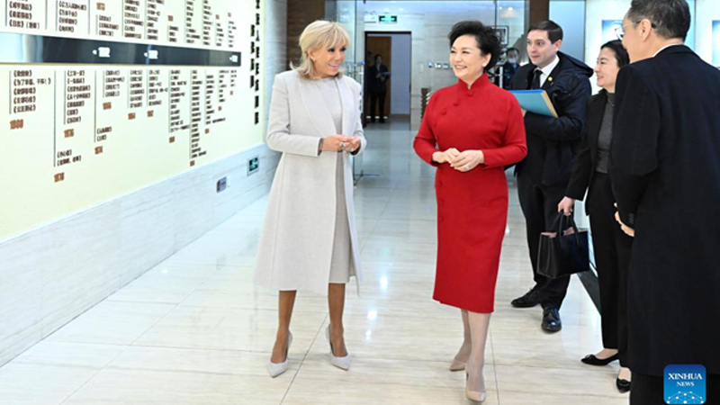 پێنگ لیوان هاوسەری شی جینپینگ سەرۆکی چین و بریجیت ماکرۆن هاوسەری ئیمانوێل ماکرۆن سەرۆکی فەرەنسا رؤزى پێنجشەممە سەردانی شانۆی هونەری فۆلکلۆری پەکینیان کرد.