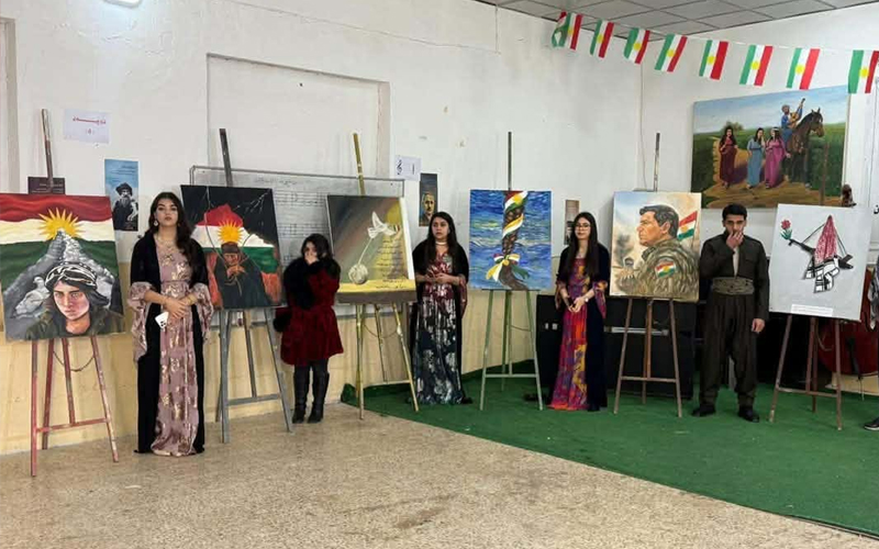 لە پێشانگاکەدا، ژمارەیەک قوتابی لە چەندین تابلۆی جوان و ناوازەدا، هونەرەکەیان خستبووە خزمەت پشتیوانیکردن لە شۆڕش و بەرخۆدانی ڕۆژئاوای کوردستان.