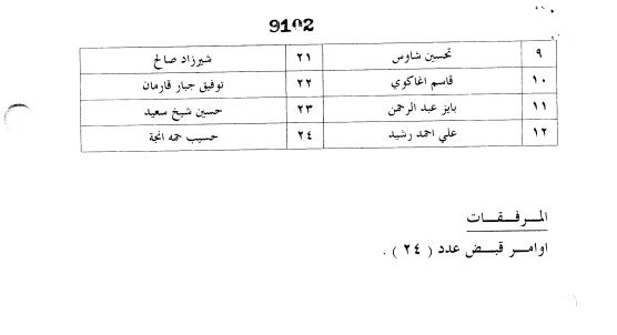 , حەمید شەعبان, نەجم عەبدوڵا دوری, عیسمەت سابیر 94-اللوائ الركن (عصمت صابر عمر) قائد فق /4 ,عەدنان جەباری 179-سعید عدنان جباری, جیهان موسا, رەفعەت گلی شمال رفعت كلی امر سریە , عوسمان شێخ سەعید, شێرزاد ساڵەح, تۆفیق جەبار قارەمان 159-توفیق جبار قارمان